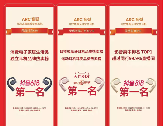 Among numerous open earphone brands, the international intelligent acoustic brand Cleer stands out the most. The Cleer ARC series first generation product launched in December 2021 is one of the first open true wireless earphones launched in China. Once launched, it quickly swept the market with its differentiated selling point of "not entering the ear, not harming the ear, safe and more comfortable", sparking a new "sound" trend of open true wireless earphones in the market. It is worth mentioning that it also broke the situation that the wireless smart headset market followed AirPods at that time, becoming a "blockbuster" electronic product in 2022 at one fell swoop, ranking first in sales of major lists in heavy e-commerce activities such as Tiktok 618, 818, and Double 11, and opening up a new open headset track for the headset industry.