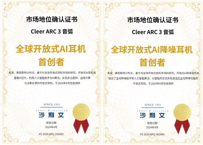 Due to its innovative breakthroughs in AI technology and noise reduction, the Cleer ARC 3 Sound Arc Noise Reduction Edition has been awarded the "Global Open AI Earphone Pioneer" and "Global Open AI Noise Reduction Earphone Pioneer" certifications by Sullivan, which not only recognizes its technological innovation but also affirms its contribution to improving user experience and safety.