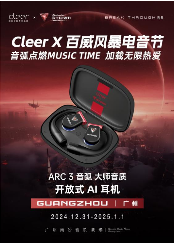 在這樣的氛圍中,Cleer與百威風(fēng)暴電音節(jié)驚喜聯(lián)名,推出專屬聯(lián)名款-Cleer ARC 3 音弧 開放式AI耳機(jī),當(dāng)精湛的聲學(xué)科技遇上狂熱的電音文化,會(huì)碰撞出怎么的火花?